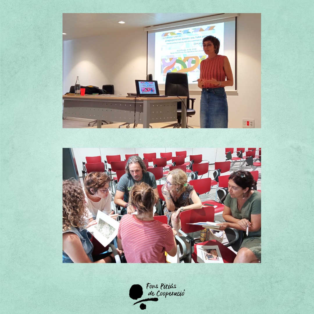 Treball amb centres educatius. Proporcionem recursos i activitats específiques per a escoles i instituts, oferim formació per a professorat i impulsem el desenvolupament de projectes d’Aprenentatge Servei, on l’alumnat es converteix en veritable agent de canvi social. Perquè l’experiència ens ha mostrat que l’educació realment transformadora és aquella que s’integra en la pràctica diària, a través del treball cooperatiu i en estreta relació amb la comunitat.